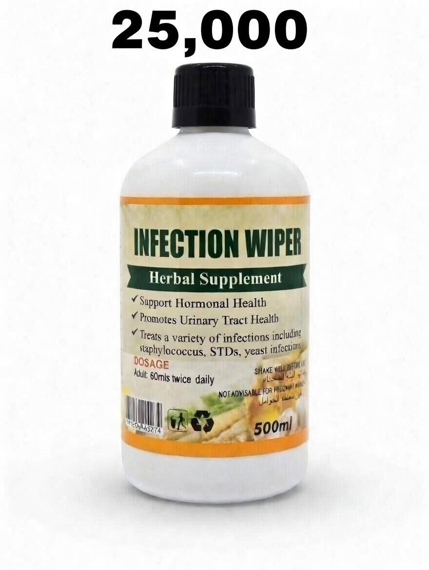 Infection Wiper is a powerful, 100% natural African herbal formulation designed for the total eradication of stubborn infections, particularly Sexually Transmitted Infections (STIs) and Sexually Transmitted Diseases (STDs). Crafted from time-tested traditional herbs, this product serves as a broad-spectrum remedy that targets bacterial, fungal, and other pathogenic infections while supporting overall body wellness.